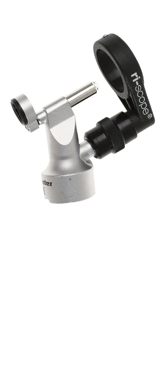El otoscopio quirúrgico ri-scope®: para uso libre durante estudios y cirugías con iluminación Xenón y una gran variedad de opciones de fuentes de alimentación.