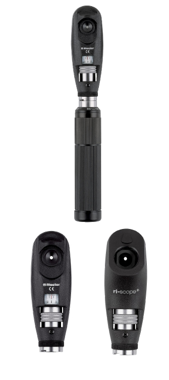 Ri-scope® L: oftalmoscopio portátil Premium con reconocida óptica, reducción de reflejo y tecnología LED para facilitar un diagnóstico eficiente con costes de mantenimiento reducidos. Disponible con iluminación Xenón y LED, además de una gran variedad de fuentes de alimentación.