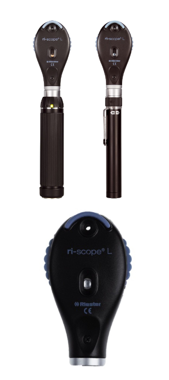 Ri-scope® L: oftalmoscopio portátil Premium con reconocida óptica, reducción de reflejo y tecnología LED para facilitar un diagnóstico eficiente con costes de mantenimiento reducidos. Disponible con iluminación Xenón y LED, además de una gran variedad de fuentes de alimentación.