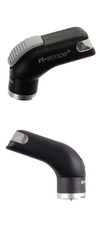 El soporte depresor lingual ri-scope® de fibra óptica: aparato portátil para diagnósticos de la garganta y la laringe con iluminación de fibra óptica LED o Xenón, con una gran variedad de opciones de fuentes de alimentación.